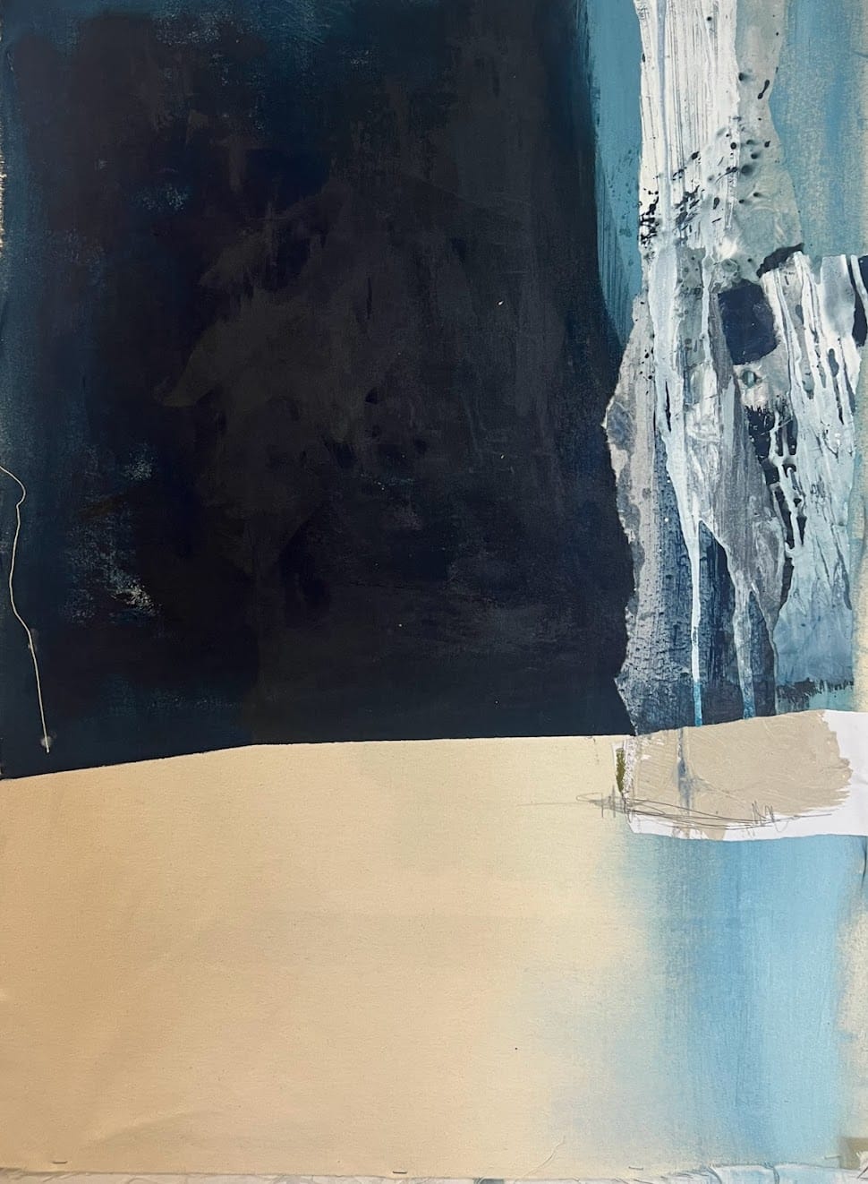 Écho Bleu capture ces résonances visuelles où la couleur se répercute à l’infini. Cette œuvre abstraite de grand format évoque les vibrations du bleu dans toutes ses nuances, de l’indigo profond aux tons plus lumineux. Les pigments naturels créent une palette organique qui invite à se perdre dans la contemplation de cette couleur unique. Réalisée en marqueterie de papier japonais artisanal sur châssis toile coton, chaque fragment a été teinté avec des pigments naturels puis assemblé à la main. La texture du papier révèle une profondeur exceptionnelle qui capte et diffuse la lumière naturelle. Montée avec caisse américaine brute MDF, cette pièce imposante transforme votre intérieur en espace de sérénité. Une œuvre qui dialogue avec la lumière et fait résonner le bleu dans votre quotidien. Matériaux : Pigments naturels, papier japonais sur châssis toile coton avec caisse américaine brute MDF Format : 60×80 cm Signature : Signée au dos par l’artiste